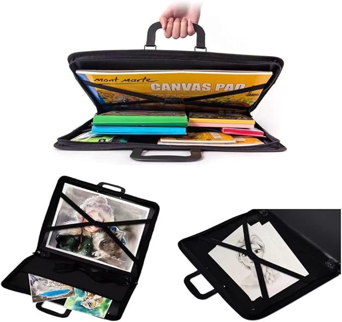 حقيبة SYOSI A3 Artist Portfolio Case هي حقيبة حمل متينة مصممة لتخزين ونقل الأعمال الفنية والرسومات ولوحات الرسم. تبلغ أبعادها 48×37 سم، وهي مثالية للطلاب والفنانين والمحترفين لتنظيم أدواتهم الفنية وحمايتها.